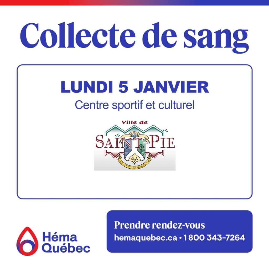 COLLECTE DE SANG | LUNDI LE 5 JANVIER 2026