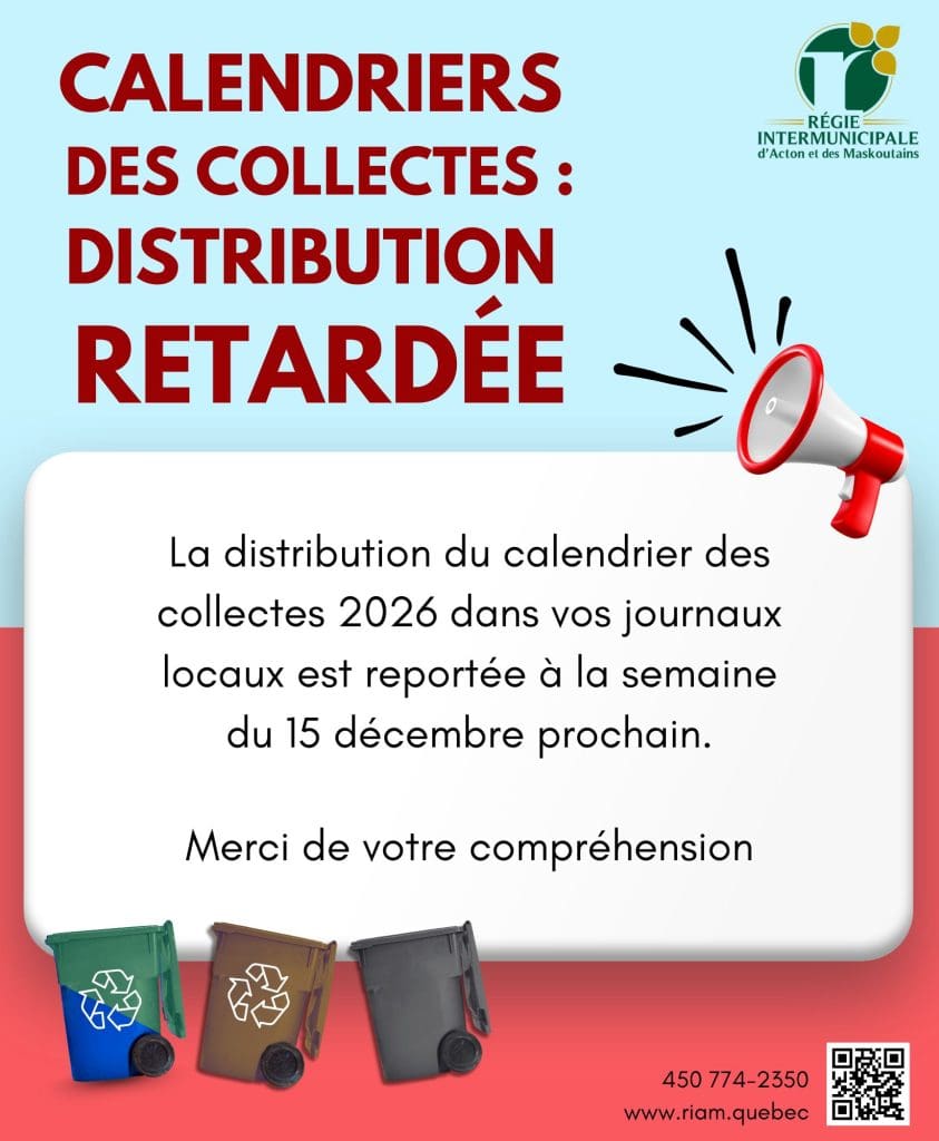 RETARD DANS LA DISTRIBUTION DU CALENDRIER DES COLLECTES 2026